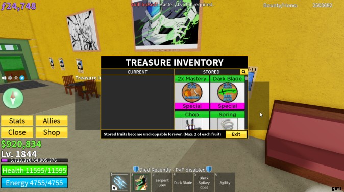 その下に「ゲームパス」というメニューがあります。 」 ここで購入できます:2x ドロップ チャンス、Fast Boats、2x Money、2x Mastery、Dark Blade、Fruit Notifier。また、将来的にいくつかの新しいゲームパスが追加される可能性があります。それは時間の問題です。ただし、ゲームパスは他のアイテムよりも高価です。したがって、どのゲームパスを選択するかについてよく考える必要があります。
