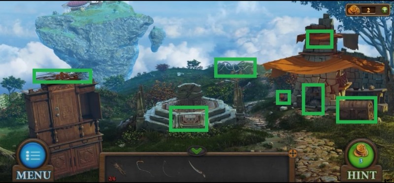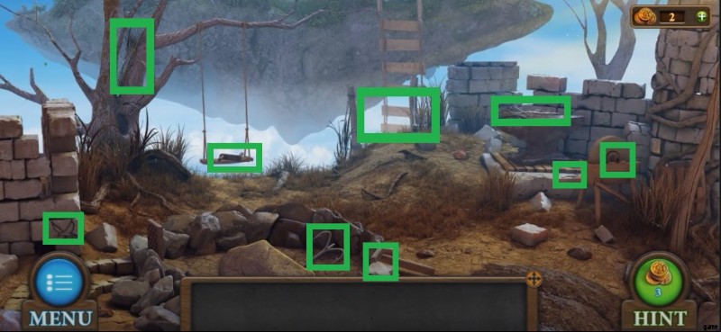 - レベル 4 では、多くのことを行う必要がある浮島にいることに気付くでしょう。まず、ナイフとフックを手に取ります。次に、木からブラッシュウッドを取り除き、ブランコからハンドルを取ります。