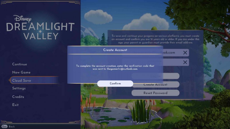 そうすることで、クラウド保存とクロスプログレッションの目的で使用できる新しいディズニー ドリームライト バレー クラウド アカウントが作成されます。