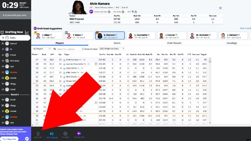 Yahoo Fantasy Football で自動ドラフトを使用する