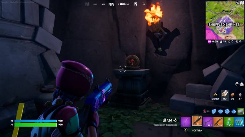 - シャッフルド シュラインで土の山を掘り返してレリック シャードを見つけます。レリック シャードが現れるまで土の山をハックします