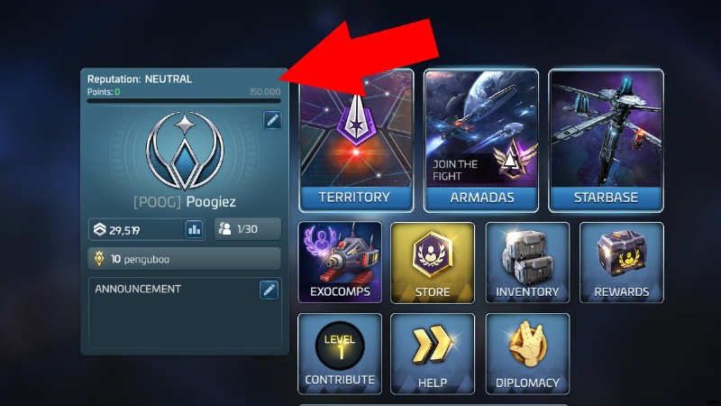 同盟の評判は個々の属性であるため、各同盟メンバーには独自の属性があります。 同盟をタップして自分の同盟を確認できます 画面の左下隅にあるボタンをクリックしてから、同盟の情報パネルの上を見ます。