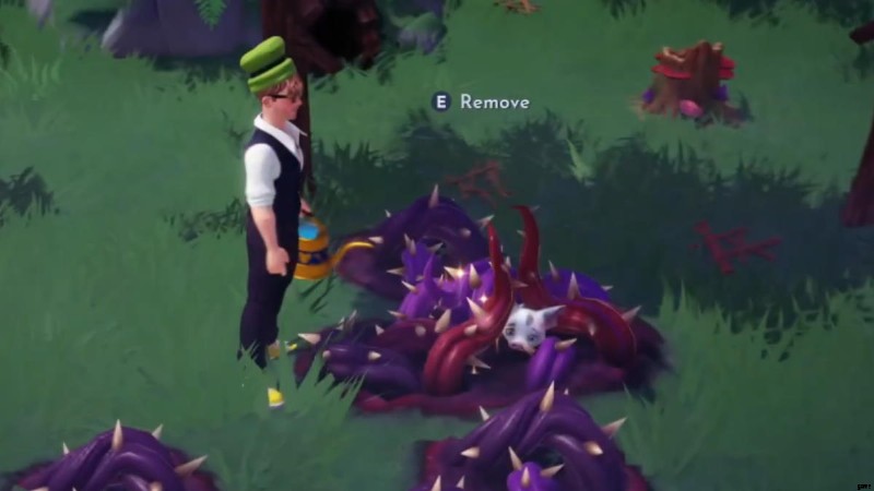 牧草地ですべての足跡を見つけると、勇気の森にたどり着き、ついにプアを見つけることができますが、彼はいくつかのナイトソーンに巻き込まれています!魔法を使ってトゲを取り除き、プアを解放しましょう。