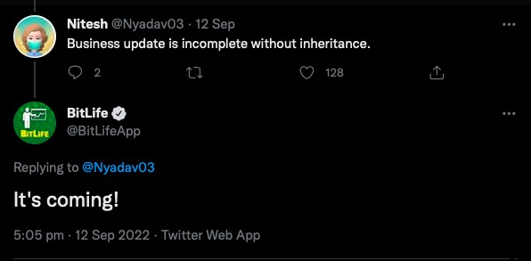一部のプレイヤーは、Candywriter の BitLife 開発者に、将来この機能を追加する計画があるかどうか尋ねているので、心配する必要はありません。 Twitter で、BitLifers は、この追加が実際に間もなく行われると述べています!