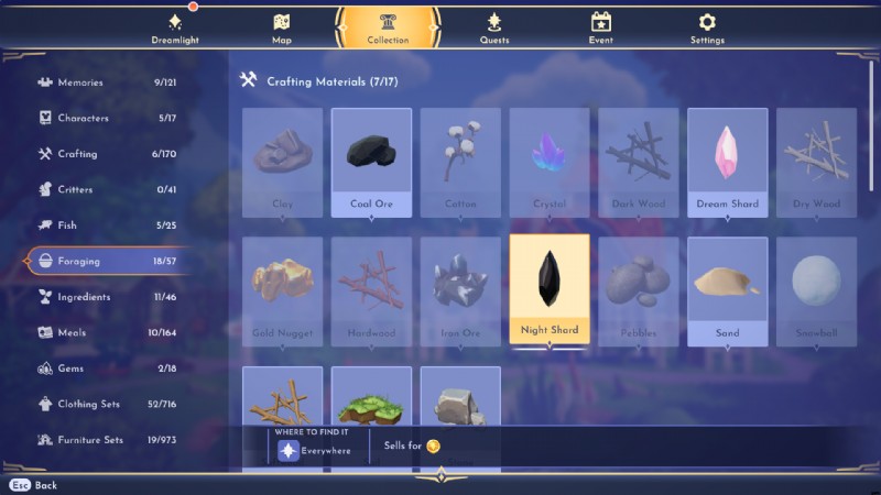 プレイスルー中に、ディズニー ドリームライト バレーでドリーム シャードを取得する 3 つの方法を見つけました。最初の方法はナイト ソーンを取り除くことです ドリーム バレー周辺。2 つ目は クリッターに餌をやる必要があります 夢の谷で。各バイオームには、色に基づいた 5 つのバリアントを持つ独自のクリッターがあります。