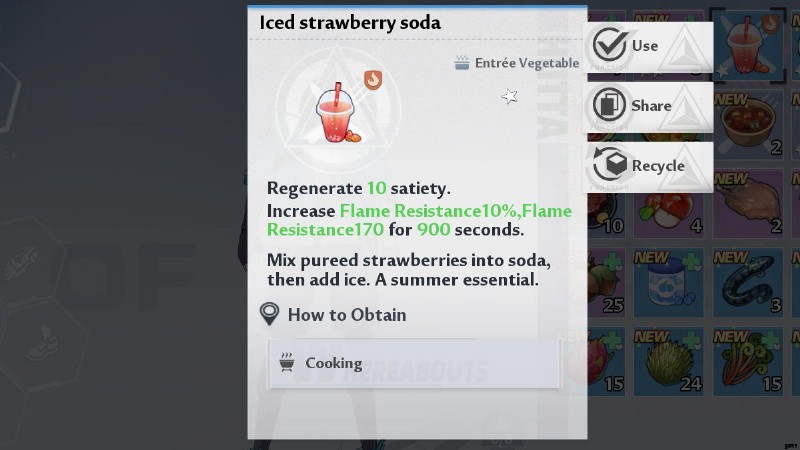 アイーダ カフェ イベントのためだけにゲームに新しい食料アイテムが追加され、アイス ストロベリー ソーダが追加されました。 その一つです。暑い夏にぴったりの爽やかなドリンクですので、作り方をご紹介します。以下が必要です:
