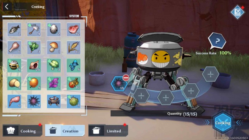 タワー オブ ファンタジーでウニ入り蒸し卵を作るには、任意のクッキング ステーションの [クッキング] メニューで料理のレシピを選択し、スライダーを調理したい量に調整してから、[クッキング] メニューをクリックします。