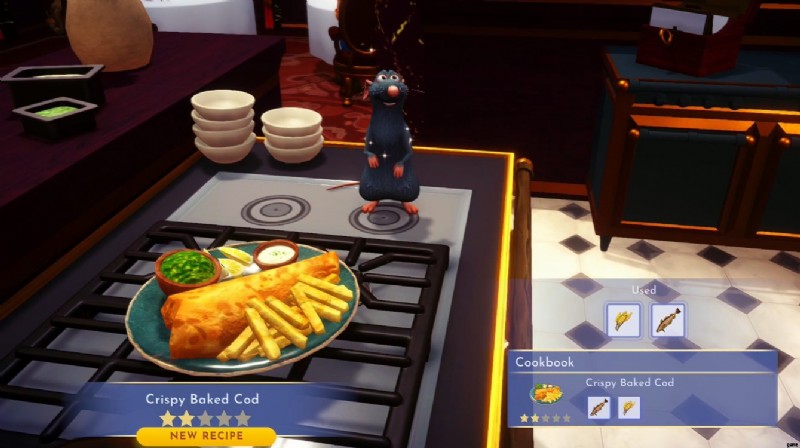 ディズニー・ドリームライト・バレーでは、タラと小麦を使ってクリスピー・ベイクド・タラを作ることができます。 2 つの材料を入手したら、クッキング ステーションに向かい、それを操作して、2 つのアイテムをクッキング ポットに追加し、1 つの石炭を使用して調理プロセスを開始できます。それだけで、アツアツでクリスピーな焼きタラの出来上がりです。