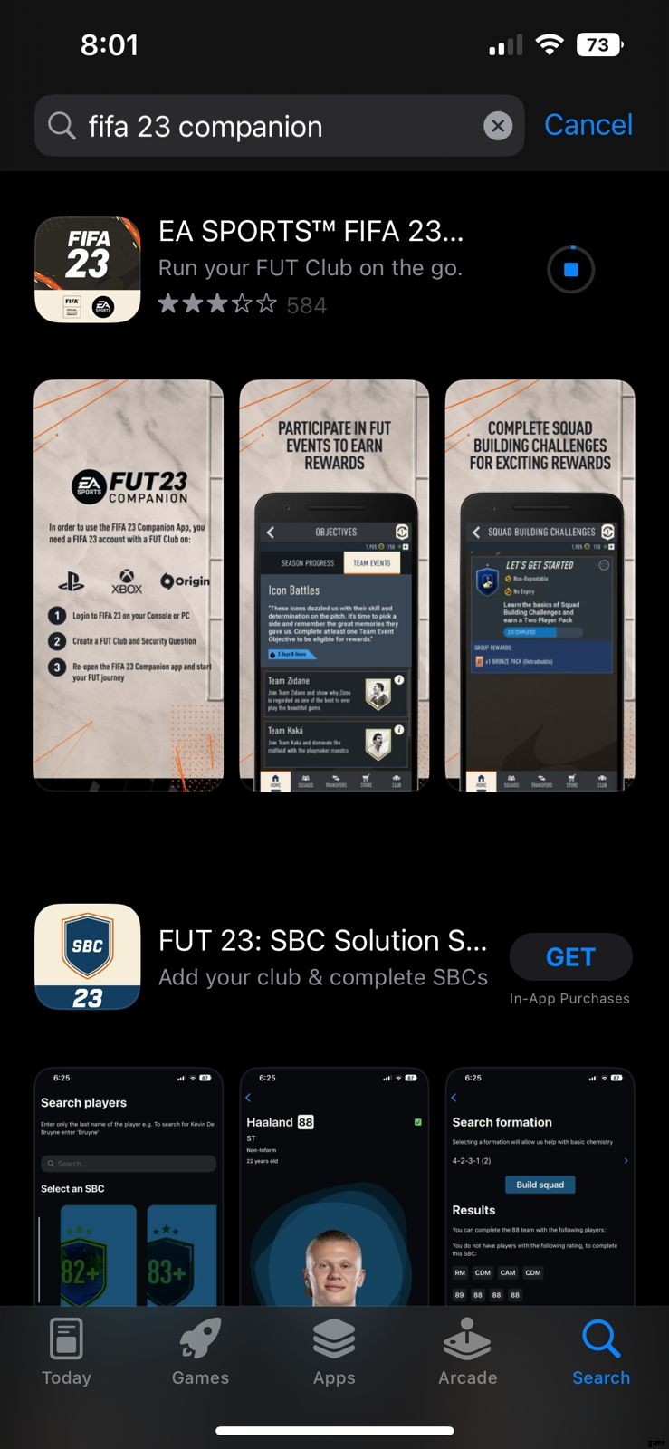 iOS ユーザーは、App Store で同じ用語を検索して、FIFA 23 アプリをダウンロードできます。アプリをインストールすると、FUT 23 クラブが作成およびリンクされた EA アカウントでログインできます。