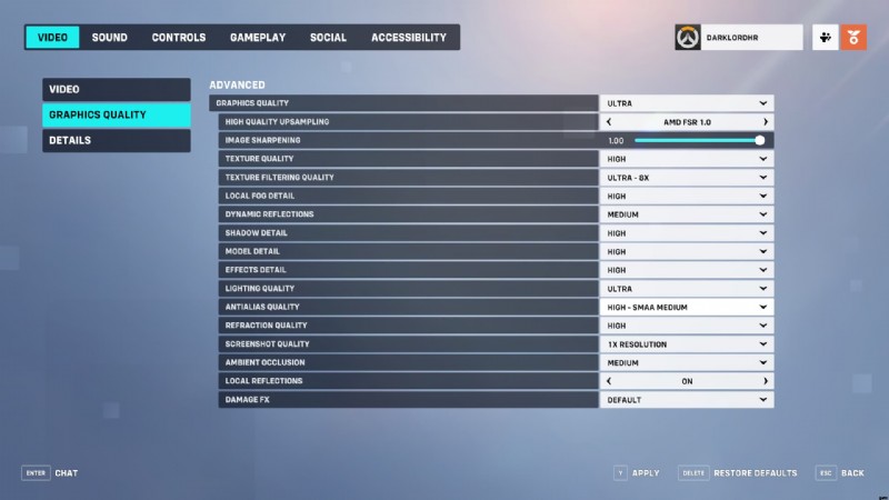 オーバーウォッチ 2 では、ビデオ設定のダイナミック レンダー スケール オプションをオフにすることで、ぼやけた画面の問題を修正できます。オフにしたら、グラフィック設定に移動し、高品質アップサンプリング オプションを AMD FSR 1.0 からデフォルトに設定します。そうすることで、オーバーウォッチ 2 のぼやけた画面の問題が修正されます。