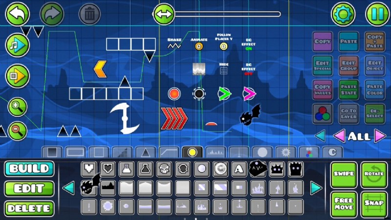 各プレイヤーは、Geometry Dash で独自のレベルを作成できます。このために、ゲームには便利なコンストラクターがあります。簡単なリラックス レベルと非常に難しいレベルの両方を作成できます。もちろん、レベルを面白くするためには、適切な音楽を選択する必要があります。しかし、デフォルトの曲はかなり退屈です.