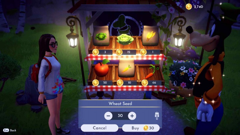 小麦の種は、ディズニー ドリームライト バレーのピースフル メドウズ バイオームにあるグーフィーの屋台から入手できます。彼は種をそれぞれ 1 スター コインで販売しています。種を入手したら、植えて水をまき、小麦を得ることができます。