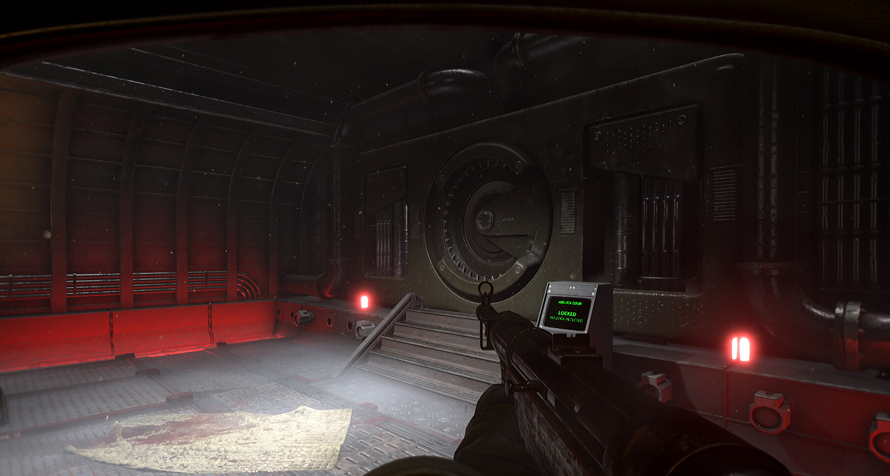 - それを通り抜け、コンソールを操作してエアロックのドアを開けます。