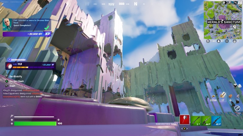 今週のクエストでは、プレイヤーは Chrome Blob になり、7 階以上に落ちる必要があります。これは、プレーヤーが Chrome Splash を見つけるか、マップの周りにある Chrome Tornado の 1 つを使用して、非常に高く上がる必要があることを意味します。その後、Chrome Blob に変身し、非常に高い位置から落下し、安全に下の地面に着地する必要があります。