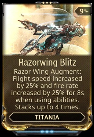 ティターニアは、特殊な武器でまともなダメージを与えることができるモバイル キャラクターです。ただし、Razorwing Blitz mod の助けを借りて、Titania の攻撃速度が向上するため、このキャラクターをより強力にすることができます。