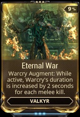 Valkyr は強力な近接キャラクターであり、Warcry として知られる優れたスキルを持っています。味方をバフし、敵を遅くします。そのため、Eternal War mod の助けを借りて、その期間を延長し、Valkyr のパフォーマンスを向上させることができます.
