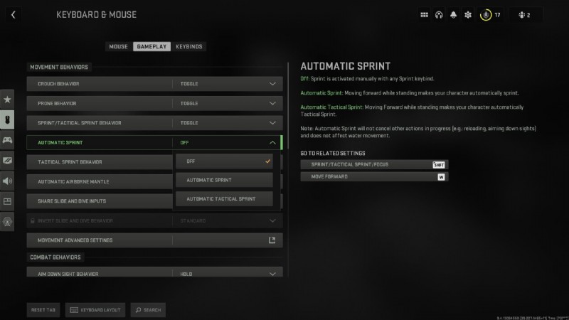 - コンソールの場合: 自動スプリントを有効にして自動戦術スプリントを選択し、設定メニューのゲームプレイセクションでその動作をカスタマイズします。あとは前に進むだけでタックスプリントが可能。