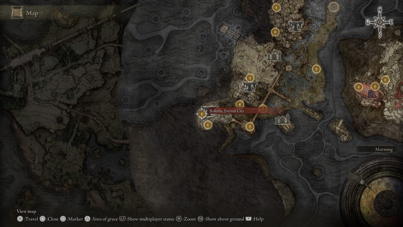 Ghost-Glovewort Picker's Bell Bearing [1] は、永遠の都 Nokron にあります。また、他の 2 つとは異なり、このベル ベアリングの位置は簡単に見つけることができます。 Nokron Site of Grace にテレポートします。
