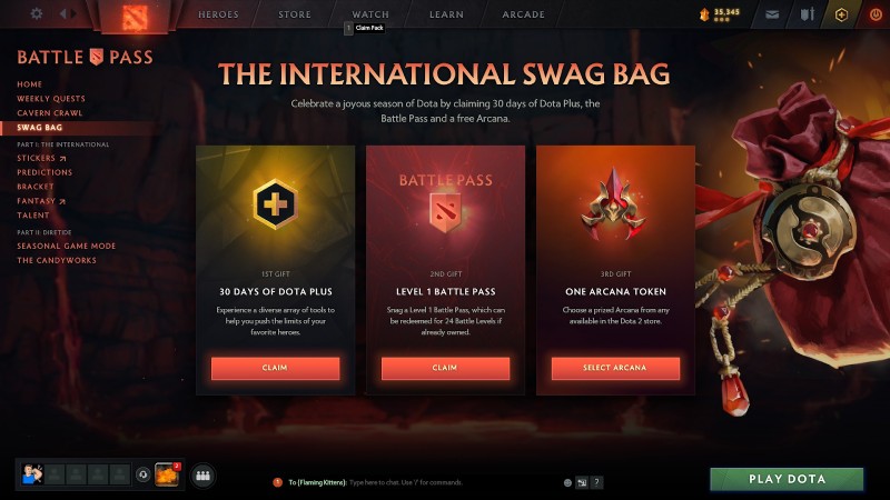 2023 年 1 月 12 日であるバトル パスの終了まで、Valve からギフトを受け取ることができます。 .無料のアルカナを手に入れるために必要なのは、プレイすることだけです 10試合 Dota 2 のどのモードでも。
