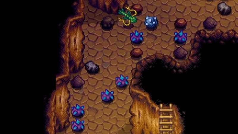 - 髑髏の洞窟をどんどん深く進んでいくと、 、イリジウム鉱石を見つけるチャンス 増加します。さらに、イリジウム鉱石を栽培できます パープルスライムから 、イリジウム バット とイリジウム カニ