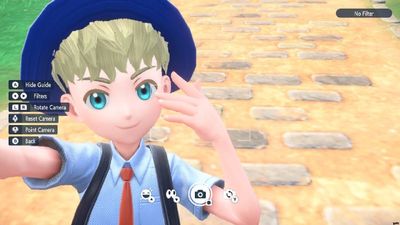 ポケットモンスター スカーレット・バイオレットのカメラの最も優れた点の 1 つは、さまざまな独自のオプションが用意されていることです。たとえば、Y ボタンを使用できます 自撮りモードを選択します。また、ぼかしやセピアを追加したり、カラー パレットを変更したり、さまざまなことができる特別なフィルター メニューもあります。このメニューを選択するには、方向パッドを左右に動かすだけです。