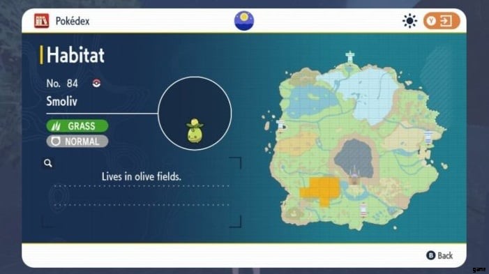名前が示すように、スモリフ オイルを入手できます。 スモリフから .このポケモン オリーブ畑に住んでいます。そして、そのようなフィールドは Scarlet and Violet でのみ見つけることができます 南部州で 、コルトンドの町周辺 .