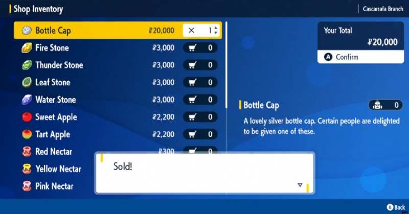 都市を訪れると、おそらく Delibird Presents ストア を見つけたことがあるでしょう。 .さまざまな保有アイテムを販売しています など、便利なアイテムがたくさん。 6 個のバッジを獲得したら 、高価なボトル キャップが見つかります これらの店舗で .ただし、これらのボトル キャップは ゲームで最も貴重なリソースの 1 つです。ちなみに、星5のレイドで低確率で入手できます .