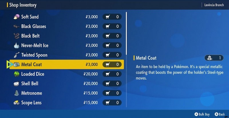 緋色と紫 究極のポケモンを手に入れることができる 2 つのエキサイティングな新しい RPG です トレーニング経験。プレイヤーはパルデア地域のオープンワールドを探索し、さまざまなポケモンを狩ることができます . Game Freak は、シリーズの以前のゲームの新機能と古い機能の両方を組み合わせたものです。このガイドでは、アイテムの購入場所について説明します。 ポケモン用 ホールド スカーレットとバイオレットで .