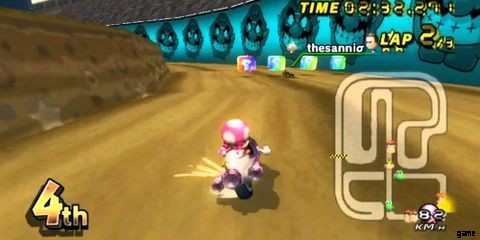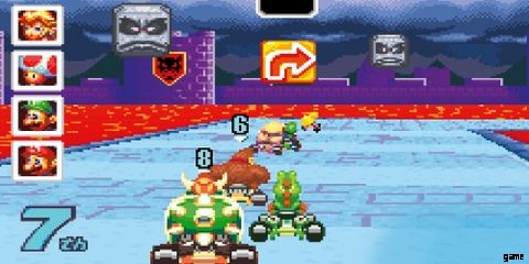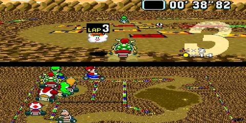 不安定な GBA グラフィックスは管理が難しいというよりも厄介ですが、MK スーパー サーキット でスター カップを獲得する それほど厳しいものではありません。スタート地点のスノーランドの滑らかな氷とレグ 3 のヨッシー砂漠のゆっくりとした砂地との間の路面の劇的な違いは挑戦的ですが、カップの最も困難な側面は、各トラックの長さを含み、すべてがかなり長いです。速く完了するには、優れた運転技術以上に集中力が必要です。