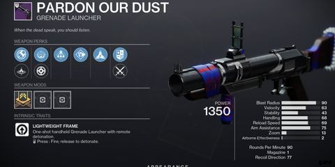 Destiny 2のグレネードランチャー さまざまな武器の原型です。キネティック バージョンとスペシャル バージョンは、通常、ヘビー スロットを使用するバージョンとは異なる目的を果たします。パワー グレネード ランチャーは、大量のダメージを与え、発射速度が速く、通常はマガジンにより多くの弾薬を保持できます。キネティック バージョンとスペシャル バージョンはまだ強力ですが、マガジン サイズは小さいですが、戦闘中にすばやく交換できます。また、ヘビー グレネード ランチャーでは利用できないいくつかのユーティリティ Perk も取得します。たとえば、God Roll of Pardon Our Dust は、必ずしもダメージを与えるために使用されるとは限らないキネティック武器の優れた例です。