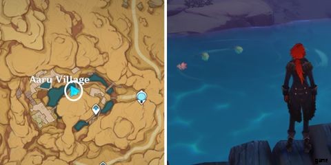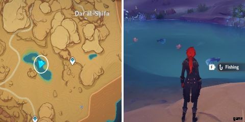Genshin Impact's で下セテクの土地の 2 番目で最後の釣りスポット 最新の砂漠地域は、別の小さな水域にあるアール村のすぐ南にあります。この釣り場にたどり着くには、プレイヤーは Dar al-Shifa の南にある Waypoint に移動し、下の小さなオアシスまで西に滑り降りる必要があります。プレイヤーはいくつかのファンガス モンスターに直面する必要があるかもしれませんが、それ以外にこの場所に到達するのは比較的簡単です。この釣りスポットは、プレイヤーに、赤い魔王、メダカ、真のフルーツ アングラー、ラズライト アックス カジキ、ドーン キャッチャーを提供して、原神インパクトに追加できます。 釣りコレクション。