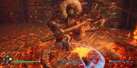 一部の Asterigos にとって挑戦となる可能性があるバラードのボス戦の別の要素 戦闘員は彼のキャラクター モデルの色であり、小さなアリーナの暗い色合いです。彼が火を吹き込まれたエレメンタル アビリティの 1 つを使用していない限り、特に部屋の反対側に配置されている場合、彼の次の動きがどうなるかを理解するのは難しい場合があります。したがって、最善の行動は、回避ボタンまたはキーに常に指を置いておくことです。言い換えれば、Baraad の次の攻撃が何であるかを適切に視覚的に示すことなく攻撃するよりも、やみくもにかわす準備をしておく方がよい.