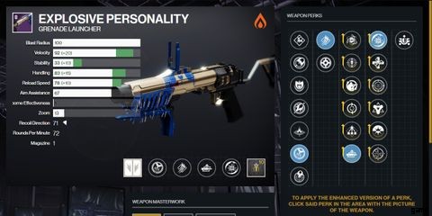 Explosive Personality にはすでに最大爆風半径があるため、この統計を強化する Perk は最適な選択ではありません。このゴッド ロールは、リロード速度と発射速度を優先して敵を素早く倒します。ウェーブ フレーム グレネード ランチャーとして、ガーディアンは Destiny 2 で 3 つのターゲットを簡単に攻撃して両方のプライマリ パークを有効にする必要があります。 .