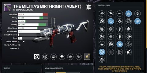 PvP では、プレイヤーは PvE の敵よりもはるかに機動性があります。これにより、グレネードランチャーの爆発で攻撃するのが難しくなる可能性があります。 Destiny 2 の近接手榴弾 この問題を修正し、ガーディアンがより簡単にターゲットを攻撃できるようにします。プレーヤーは、武器の準備と収納速度を上げるために、The Militia's Birthright に Quick Access Sling Mod を装備する必要もあります。このゴッド ロールにより、ガーディアンは Destiny 2 で他のプレイヤーと遭遇するほとんどの場合に備えてグレネード ランチャーを準備できます。 .