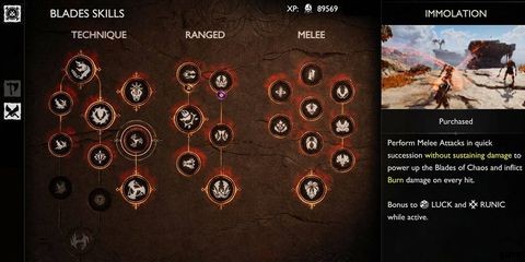 斧を使った永久凍土と同じように、ブレイズ オブ カオスは焼身でアップグレードできます。 God of War:Ragnarök で発火する武器を充電するスキル クラトスが健康を維持するときの霜ではなく。プレイヤーは、完全に充電されると、周囲の敵に対して同じ爆発攻撃を使用できますが、今回は、敵は時間の経過とともに体力を消耗する火傷状態になります。 Kratos の武器庫のこの側面を強化したいプレイヤーには、Atlas Eruption がおすすめです。 ヘビー ルニック アタックは、敵に火を放ちながらプレイヤーが燃えるストライキを地面に叩きつけるのを見るため、イモレイションと組み合わせてボスに対して非常に効果的です。これが引き起こす蓄積されたダメージは、ターゲットの体力を急速に消耗させ、ゴッド オブ ウォー:ラグナロク の優れた初期のルーン ビルドになります。 .