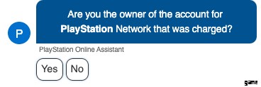 - まず、請求された PSN アカウントの所有者かどうかを尋ねるチャットボットに話しかけます。はいを選択します。
