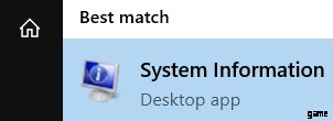 - 何もダウンロードせずにこれを行うことができます。 Windows キーを押して システム情報 を検索するだけです 、起動します。