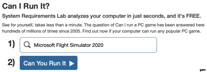 - 最初のフィールドでゲームを検索します。 2 番目のフィールドで、[Can You Run It] をクリックします。 .