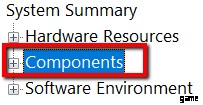 - 次に、左側のセクションに移動します。 コンポーネント を選択 横にあるプラス記号をクリックして展開します。