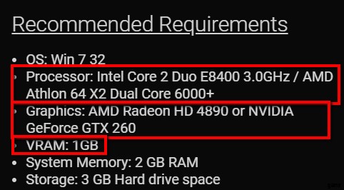 - より良いゲーム体験が必要な場合は、推奨要件を参照してください あなたのゲームのために。通常、最小要件と推奨要件は隣り合っています。しかし、そうでない場合は、オンラインで調べてください。繰り返しますが、Google を使用してこれらを検索してください。