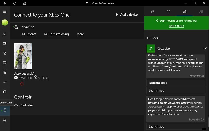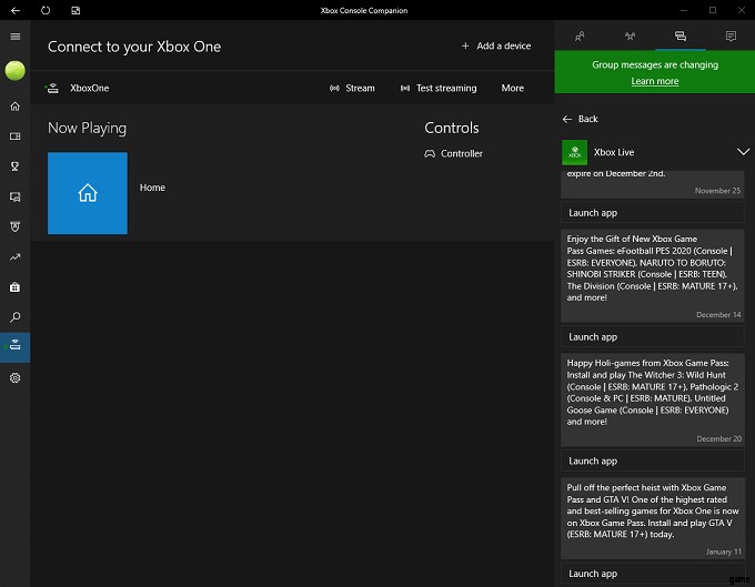 Xbox コンソール コンパニオン アプリを起動します。次のようになります: