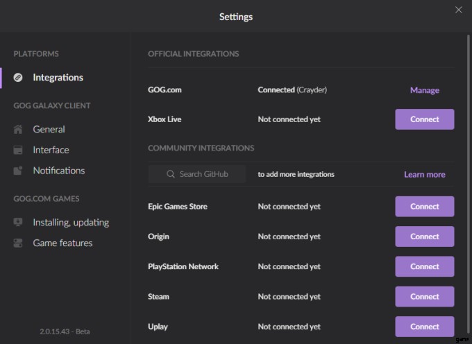 GOG Galaxy 2.0 を他のプラットフォームに接続する方法