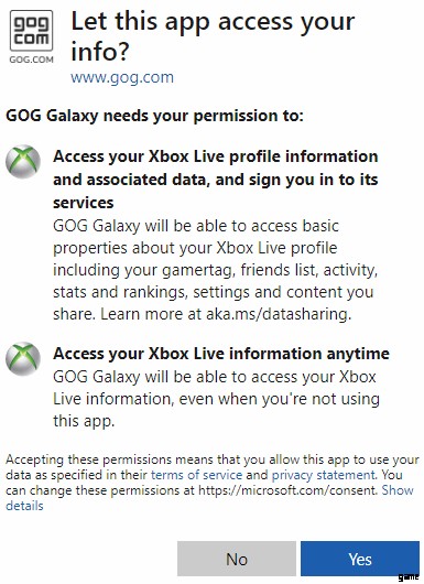 PlayStation または Xbox アカウントを GOG にリンクしても、PC 経由でこれらのゲームをプレイすることはできませんが、プレイヤーは Galaxy クライアント内で実績やその他の統計を確認できます。