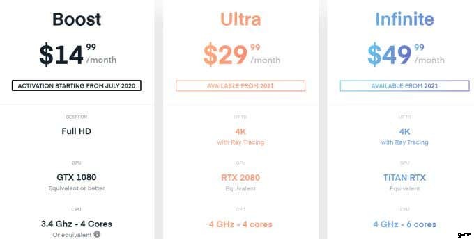 他の 2 つの層である Ultra と Infinite は、最初からより優れたコンピューター仕様とより多くのストレージを提供します。ただし、これらの階層はまだ全国で構成中であるため、2021 年まで利用できません。ただし、待機リストにサインアップして、これらの層が公開されたらすぐにアクセスすることはできます.