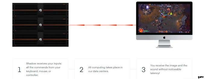 ゲームのコントロールをデバイスに入力すると、これらの入力がサーバーに送信され、そこにある PC に何が押されたかが通知され、コピーされます。ゲームはビデオでストリーミングされるため、何が起こっているかを見ることができます。