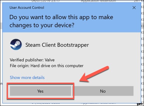 - UAC が有効になっている場合、Steam が PC に変更を加えることができるようにするかどうかを Windows が確認します。 [はい] をクリックします 確認する — この時点で、Steam は管理者権限で実行されます。