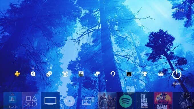 PS4のホーム画面にいることを確認してください。どのゲームやアプリでも、いつでも PlayStation ボタンを押すと、ホーム画面に戻ることができます。
