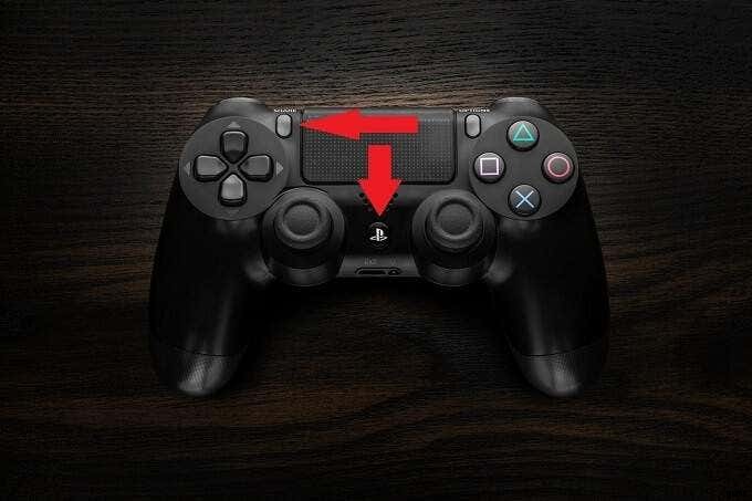 最初に行う必要があるのは、PS4 コントローラーをペアリング モードにすることです。コントローラーをオフにして、ライトが明るい白に点滅し始めるまで、丸い PlayStation ボタンと共有ボタンを一緒に押し続けます。
