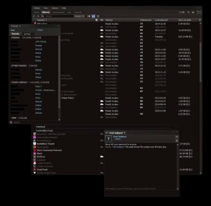 Steam クライアントでより暗いテイクを探している場合は、Pixelvision が最適です。レイアウトに関しては、それほど違いはないので、まったく新しいインターフェイスは必要ないが、変更が必要な場合は、これを使用するのに最適なスキンです.これにより、Steam のユーザー エクスペリエンス全体に優れた環境が確実に追加されます。