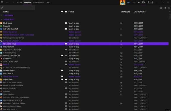 このスキンは、名前から明らかなように、ゲームを起動してプレイするための最も重要な機能に簡単にアクセスできる、非常にミニマリストな Steam クライアントを提供します。 Steam の機能をさらに簡素化したバージョンが必要な場合は、まさにそれが得られます。また、全体としてレイアウトに追加する心地よい暗い配色もあります。